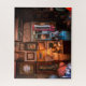 Una pintura de una casa victoriana encantadoramente llena de adornos y acogedora con cuadros, sillones, una lámpara brillante, un reloj de abuelo y más.