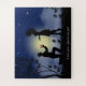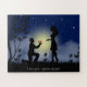 Una pareja está en silueta contra el cielo nocturno con una luna brillante detrás de ellos y estrellas. El texto, te amo - por favor di que sí!, es fácilmente personalizado si deseas cambiar la redacción.