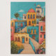 Esta postal ofrece un hermoso ilustracion caprichoso de un cuento de hadas oriental con casas de estilo arquitectónico de medio oriente.
