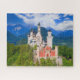 Castillo Neuschwanstein, Alemania. Vista frontal del castillo con los Alpes bávaros al fondo.