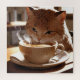 Puzzle Cat drinking coffee from a cup