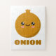 Promover el desarrollo cognitivo con este rompecabezas de aprendizaje temprano que presenta un gran personaje de cebolla adorable con la palabra "cebolla" en negrita.