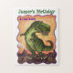 Desfile Animal Tyrannosaurus Rex Personalizado Birthday Party Puzzle presenta nuestro original arte de un juguetón dinosaurio TRex que se encuentra en un paraje prehistórico marrón con un volcán humeante. Detrás del caprichoso dinosaurio hay un cielo amarillo texturizado, naranja y un divertido borde violeta ondulado. Este lindo dinosaurio de la parte delantera y trasera de muchos productos fue pintado por el talentoso ilustrador infantil Traci Van Wagoner. Lleve hoy un fiesta prehistórico de dinosaurios para su hijo amante de los dinos con nuestro divertido y caprichoso obsequio e ideas fiestas TRex Dinosaur. ¡Que tengas un fiesta ruidoso! ¡Rawr!