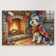 Puzzle Cesky Terrier Fireplace with Christmas Lights