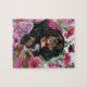 Construye tu propia obra de arte con este puzzle de espeleología de castañas negras y canas. Fondo floral de colores rosa y violeta. Buen regalo para los amantes de las mascotas. Disponible en pequeñas y grandes dimensiones.