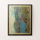 Diseño de Chattanooga Tennessee al estilo de Viajes Vintage con un barco de remo en el río con puente detrás.