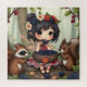 A sweet fairy tale puzzle. A cute little cartoon chibi fairy eating blackberries with her forest friends, a raccoon and squirrel.