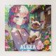 Rompecabezas personalizado. Un chica de anime de ojos azules y bonito sostiene a un gato siamés de ojos azules y bonito rodeado de flores.