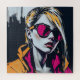 Una audaz obra de arte inspirada en el ciberpunk que presenta a una mujer segura de sí misma con gafas de sol futuristas. Ideal para los amantes de la moda urbana y de la estética futurista.