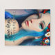 Cita de Sueña en Grande y Vive Tu Cuento de Hadas. Linda chica de hada encantada con cabello azul y flores rojas y blancas en su cabello y ojos azules. Arte de fantasía, arte de IA, contenido generativo