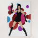 Un chica espía sexy retro super genial con un rompecabezas de pistolas.