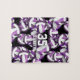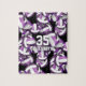 Este rompecabezas de voleibol para chicas presenta un patrón de baloncesto de voleibol de tamaño variado, púrpura y blanco, girado en todo el camino sobre un fondo negro - algunos de los paneles de voleibol púrpura tienen acento de rayas de cebra silvestres - personalizar con el nombre del jugador de voleibol y número de camiseta - por katz_d_zynes
