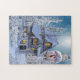 Puzzle Christmas Gift Winter White Snowman Blue Rustic