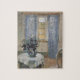 Stue Med Lyseblå Gardiner og Blå Clematis, Living Room with Light Blue Curtains y Blue Clematis (1913) de Anna Ancher es una bonita pintura de arte de estilo impresionista. Unas cortinas azules brillan por encima de la ventana, con una cálida luz del sol de verano. Una flor clematis del jardín está sobre una mesa en el estudio del artista. Sobre el artista: Anna Ancher (1859-1935) era una artista impresionista danesa asociada con los Skagen Painters (pintores de Skagen), una colonia de artistas en el norte de Jutland, Dinamarca. Un pintor de luz y sol.
