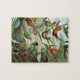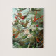 Rompecabezas de cartón robusto con tamaños que van desde 30 hasta 1014 piezas! Ciencia de ilustracion vintage y diseño biológico de Ernst Haeckel. Colibríes exóticos y coloridos en una selva tropical que vuela entre los árboles. Un pájaro está sentado en un nido con huevos.