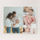 Crea tu propio rompecabezas de fotos de bebé con 4 de tus fotos favoritas. La plantilla de la foto está preparada para crear un collage de fotos con una foto principal, ligeramente superpuesta con las otras tres fotos en un zigzag vertical. Las imágenes se muestran en formato vertical y horizontal con marcos blancos.