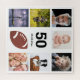 Un regalo para el cumpleaños 50 (o cualquier edad) de un hombre, celebrando su vida con un collage de ocho de tus fotos. Plantillas para los 50 años y una fecha. Fecha de nacimiento o fecha del aniversario. Letras de color negro. Fondo blanco.