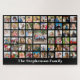 Cree un rompecabezas de rompecabezas de recuerdos fotográficos personalizados utilizando esta plantilla de collage de fotos fácil de cargar con 57 imágenes cuadradas con un nombre de familia o el texto personalizado en su elección de estilos de fuente y color y color de fondo (mostrado con texto blanco en negro). Conmemorar una ocasión especial o un evento o hacer para una significativa colección de fotos familiares un regalo de regalo. El rompecabezas que se muestra está en el tamaño de 20x30" con 1014 piezas, lo que hace que los pequeños cuadrados individuales sean de poco menos de 3 pulgadas. ASISTENCIA: Para obtener ayuda con la modificación o personalización del diseño o la transferencia del diseño a otro producto, póngase en contacto con el diseñador ANTES DE PEDERLO a través de la pestaña MENSAJE de charla de Zazzle a continuación o envíe un correo electrónico a makeitaboutyoustore@gmail.com.