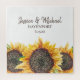 Los girasoles color amarillo y marrón sobre el rompecabezas del boda blanco. Personalizar con los nombres de la novia y del novio y fecha de boda. Contáctenos para obtener ayuda sobre la personalización y los productos correspondientes.
