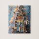 Escape to a picturesque seaside town with this beautiful jigsaw puzzle! This vibrant painting features a quaint coastal harbor lined with brightly colored houses, wooden docks, and a striking white lighthouse. Several boats bob in the blue water beneath a magnificent sunset sky. This high-quality puzzle is perfect for lovers of nautical themes, travel art, and anyone who enjoys a detailed, colorful landscape activity. A charming piece of decor for any room!