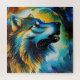 Wolf Howl en remolinos de colores vivos, azul y dorado Ai Generated Art por minx267