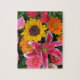 Puzzle coloridas+ flores, jardín+ gnomo, calla+ l