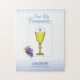 Recibir comunión por primera vez es una ocasión muy especial. Este regalo de enhorabuena, recuerdo, regalo y fiesta esencial para un niño en su Primera Comunión Santa será perfecto con el cáliz y el anfitrión y las uvas con un suave fondo azul.