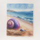 La concha de un caracol violeta se lavó en la orilla al estilo de una pintura acuarela.