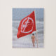 Pon tu rompecabezas haciendo habilidades en la prueba con esta toma de la advertencia de la bandera roja de condiciones peligrosas y las olas que golpean la playa de Cocoa, Florida. Rompecabezas de rompecabezas de 8 x 10 pulgadas con 110 piezas.