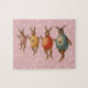Conejos de Pascua vintage bailando con disfraces de huevo
