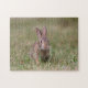 Pequeña lupulización adorable del conejo de conejo de rabo blanco en la hierba hacia la cámara.