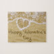 Puzzle Corazón de "Feliz San Valentín" escrito en arena