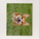 Este es un Corgi muy lindo jugando en el rompecabezas de hierba para muchas horas de diversión familiar.