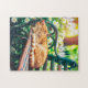 Puzzle Cozy Cat Sleeping in Garden on Bench