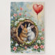 This sweet, cozy storybook illustration captures two fluffy Rabbits huddled cheek-to-cheek inside a mossy log for warmth, surrounded by snowdrops and a brightly glowing red heart balloon. A gentle and charming Valentine's Day design.