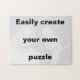 Crea fácilmente tu propio rompecabezas con tu foto. Cambie la imagen con su propia foto y haga clic en el Personalizar para cambiar el tamaño de la imagen y elegir el tamaño y el color del tipo de letra y crear su rompecabezas único. No olvide eliminar el texto grande antes de pedir. Orientación horizontal, pero se puede convertir fácilmente en orientación vertical. Un gran regalo para usted o su familia y amigos. Cumpleaños, aniversarios, Día de la Madre, Día del Padre, El día de San Valentín, graduación, bodas son ocasiones especiales y necesitas un regalo especial a precios razonables. ¡Póngalo a un precio lo más bajo posible!