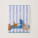 Diseño original pintado en acuarela por Sandra Gale, con estrellas de pescado, caballo de mar, tortuga y conchas sobre un fondo de rayas azules translúcidas verticales. Excelente diseño para el verano, casas de playa, bungalows o para todo aquel que ame la playa, el océano o el pescado.