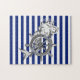 Un diseño cromado plateado como una sirena en una decoración de rayas azul marino. Un regalo náutico moderno. Utilice el vínculo "Preguntar a este diseñador" para contactarnos con sus solicitudes de diseño especiales o para obtener ayuda con alguna de sus necesidades de personalización.