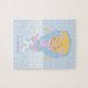 El rompecabezas personalizado cuenta con un hermoso ilustracion vectorial de un patinaje sobre hielo chica y copos de nieve en el fondo. Personalice con el nombre, el monograma, las iniciales o el texto de su elección para un regalo de su clase.