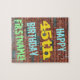 ¡Las características del este de la diversión diseño cumpleaños-temáticas del rompecabezas un mensaje tienen gusto del "45.o CUMPLEAÑOS FELIZ, FIRSTNAME! ", donde el nombre puede ser personalizado. El fondo ofrece una representación de una pared de ladrillo que consiste en algunos ladrillos coloreados rojizos. El texto de mensaje del personalizable ofrece colores como azul, amarillo, y verde, y hace un aspecto inspirar por el de la pintada pintada. Un rompecabezas como esto se pudo utilizar como manera de la diversión de enviar deseos del cumpleaños alguien que está celebrando su quinto cumpleaños cuarenta, y que tiene gusto quizás realmente de hacer rompecabezas. [~Z0000285]