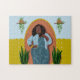 Puzzle Curva, mujer negra, plantas domésticas, amarillo y