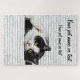 【Cute and Charming, Black and White Cat - Brick Block Background】