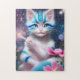 Puzzle Cute Kawaii bebé a rayas gatito rosa y azul