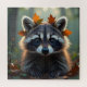 Un adorable mapache sentado en un bosque en el rompecabezas de las hojas de otoño cubiertas para darte horas de diversión reuniendo esta cualidad!