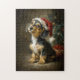 Christmas themed jigsaw puzzle featuring a cute dachshund puppy wearing a Santa hat.