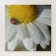 Un hermoso primer plano de una margarita blanca y su amiga la mariquita.