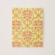 Un diseño clásico y elegante de damasco en tonos amarillo carnicero pastel y rosa arándano.