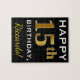 Características del este diseño del rompecabezas el mensaje "décimo quinto cumpleaños feliz", con el "décimo quinto" teniendo un falso oro-como aspecto. También ofrece un nombre de encargo, y un negro coloreó el fondo. Podría ser dado alguien que está celebrando su décimo quinto cumpleaños.