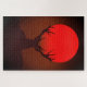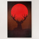 Puzzle Deer Silhouette with Fiery Red Sunset