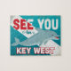 Véale en diseño retro del viaje del delfín de Key West la Florida. Estilo encantador del vintage de la turquesa con un delfín alegre de la natación.